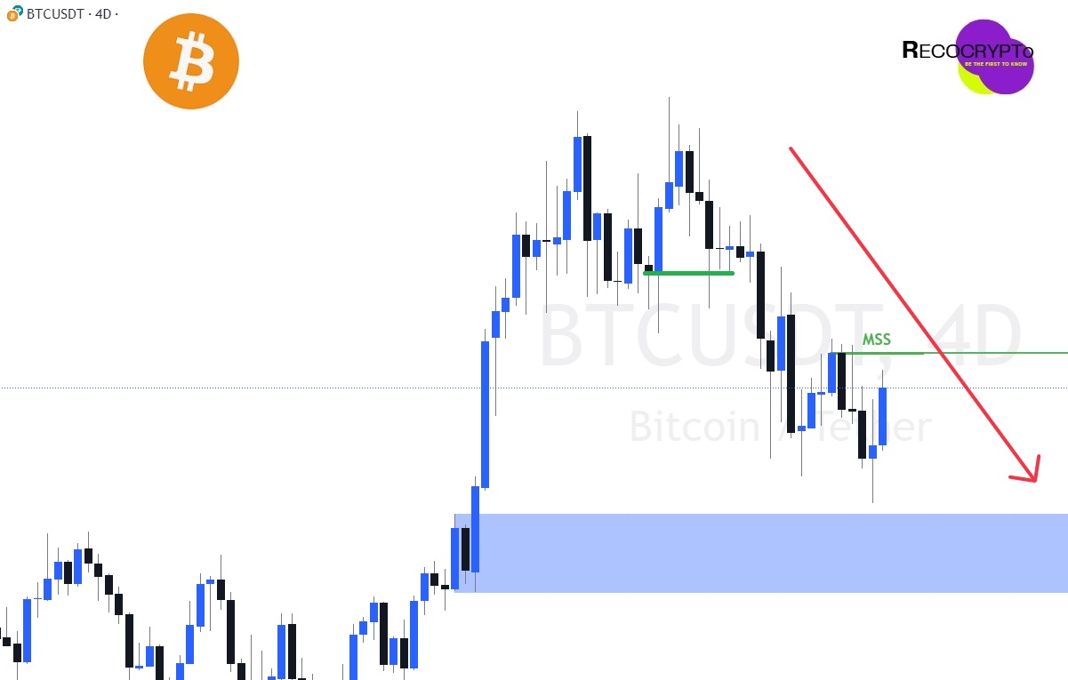 - Mais désormais un MSS a eu lieu en H4 et le prix a été poussé plus haut avec un retour probable désormais au 86186 $ dans une supply H4. Possible de chercher des achats si retour dans une demand H4 au 84031 $